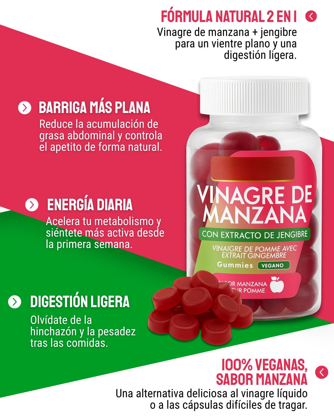 - Vinagre de manzana en polvo (500 mg).
